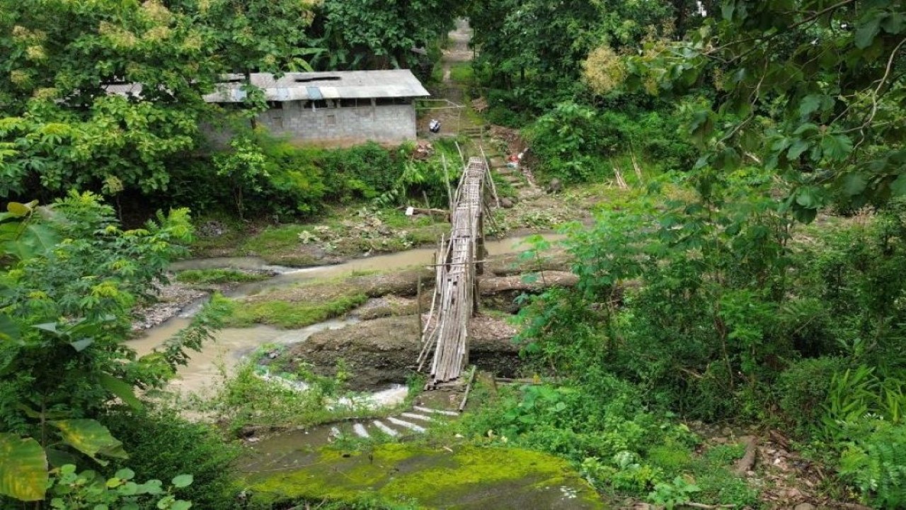 "Dulu jembatan yang dari bambu itu. Sekarang sudah hanyut karena kena banjir," tuturnya.